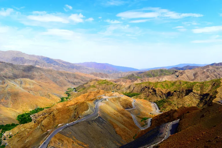 Comenzamos nuestro día con un desayuno en vuestro Riad o recogiéndoos en el aeropuerto de Marrakech, para luego dirigirnos hacia las impresionantes montañas del Alto Atlas. El viaje nos lleva a través del puerto de Tizi N’tichka, a 2260 metros de altura, donde haremos paradas para disfrutar de las vistas y conocer pueblos beréberes, testigos de un estilo de vida tradicional basado en la agricultura y ganadería.