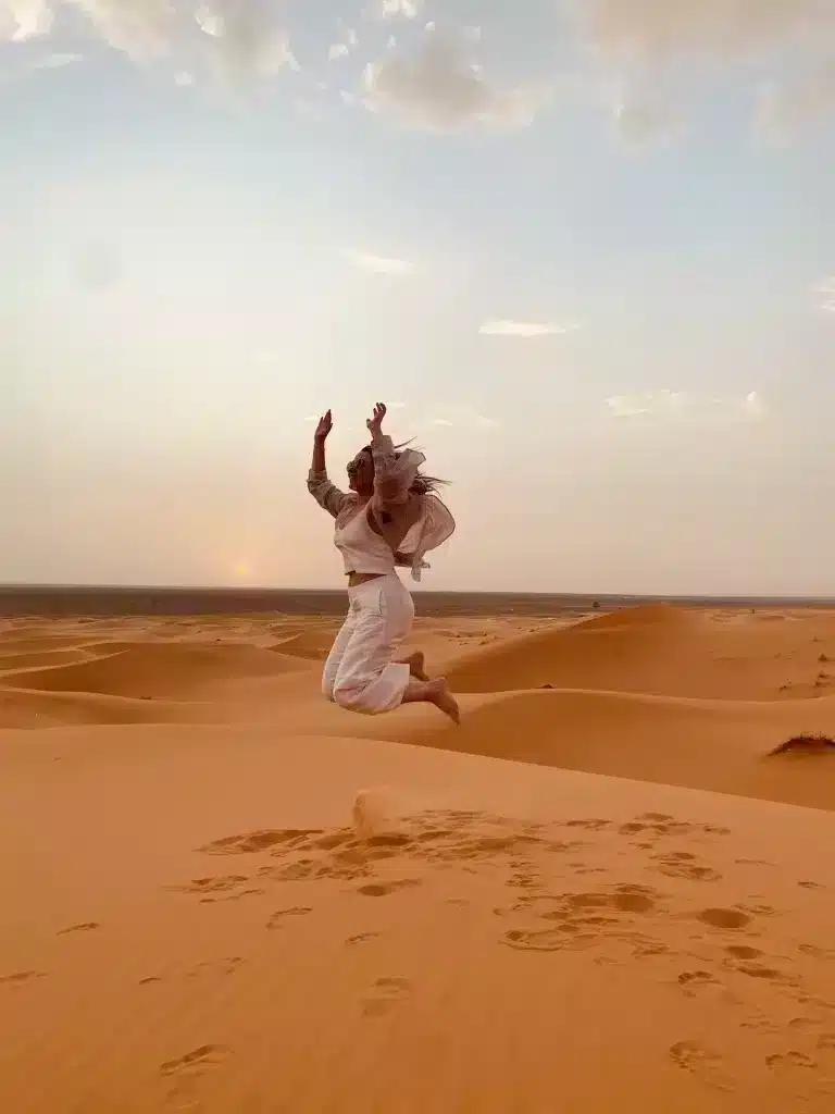 After enjoying a delicious breakfast at the charming riad in Fez, we will begin our exciting journey towards the long-awaited Sahara Desert. Along the way, we will encounter landscapes and towns of great interest, where we will have the opportunity to stop for photos and explore their charms up close. One of the first stops could be Ifrane, known as the ‘Moroccan Switzerland’, due to its striking buildings with gabled roofs. In winter, this city is covered in snow, as it is situated at an altitude of 1,713 meters above sea level, in the heart of the Middle Atlas. As we advance, the landscape becomes greener and more wooded, as we will see in the Cedar National Park, located between Ifrane and Azrou. This park is also known as the ‘Monkey Park’ due to the endangered Barbary macaques that inhabit it. Once we cross the Middle Atlas, we will traverse the Ziz Valley, the largest oasis in Morocco, until we reach Erfoud, a city famous for its wealth in fossils and marble quarries, marking the entrance to the desert. Shortly after, we will arrive at the final stop, Merzouga, where we will ride camels (which can also be replaced by 4×4 vehicles). With these majestic animals, we will reach the spectacular Erg Chebbi dunes. In this golden sea, we will witness the magical glow of the sunset over the landscape. Our camel ride will finally lead us to our camp of jaimas, located in the heart of the desert. There, we will be welcomed with Berber tea as a gesture of hospitality. You will enjoy a traditional Berber dinner and spend the night inside an authentic Berber tent, all under an unparalleled starry sky.